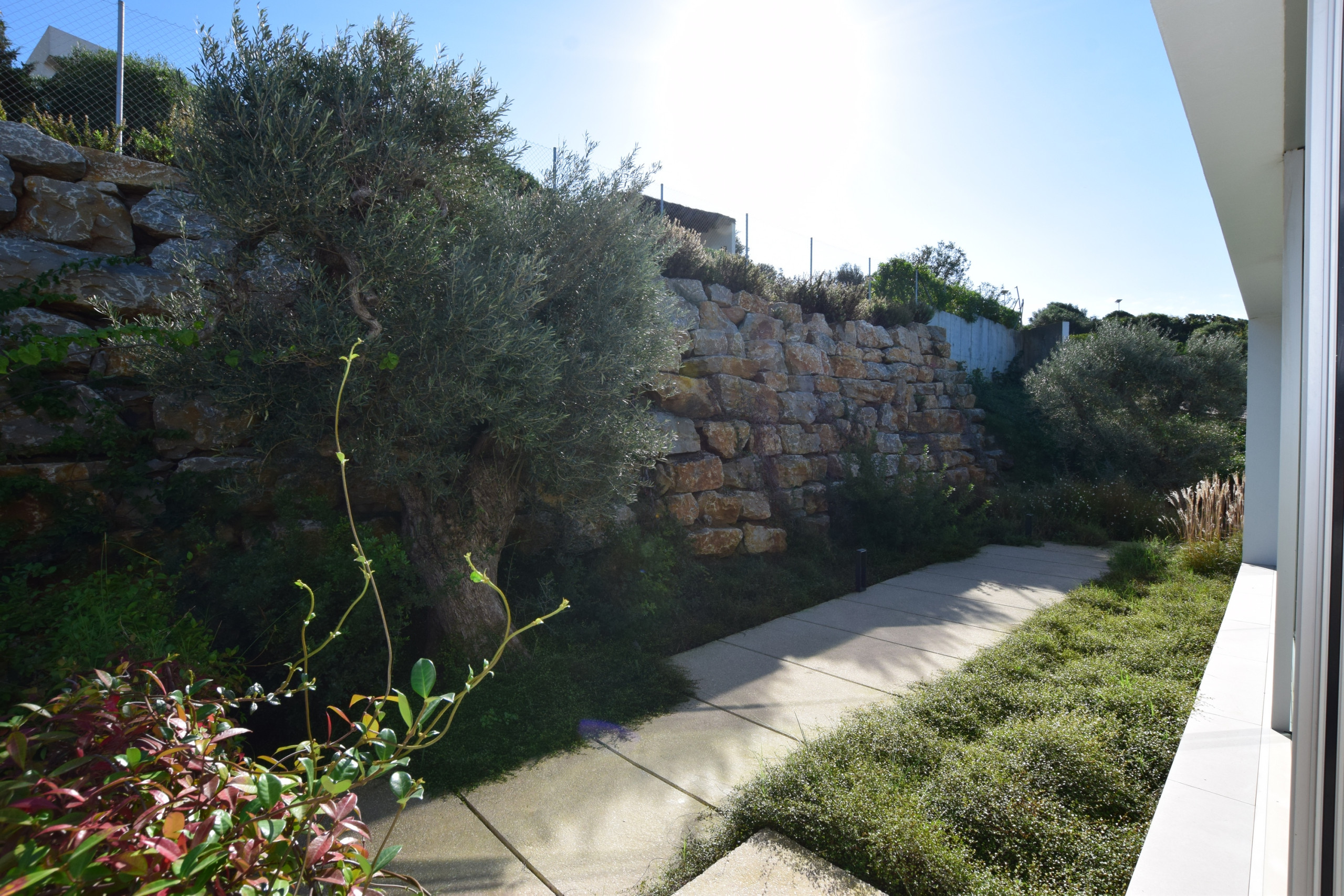 Un Jardín Mediterráneo que Enamora. Piscina de agua salada. El exterior de la villa no se queda atrás: un jardín mediterráneo te rodea con olivos, naranjos, limoneros, higueras y algarrobos, acompañado de una variedad de plantas autóctonas como lentiscos, salvias y jazmines. Además, puedes disfrutar de una deliciosa barbacoa en este entorno tan especial.