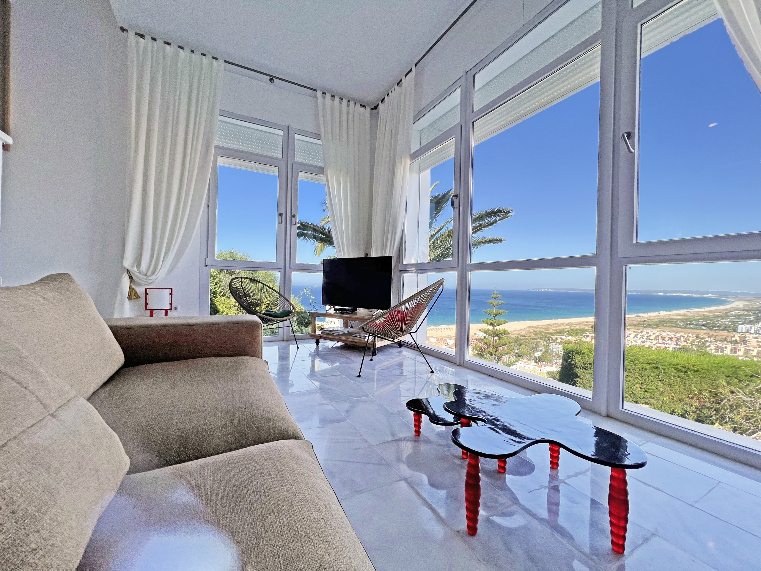 Situada en una parcela de unos 2.000m2, la propiedad de 290m2 está pensada para el disfrute de sus huéspedes y regala a quienes se alojan en ella, unas espectaculares vistas hacia el Este que van desde el pueblo de Zahara de los Atunes hasta el Faro de Trafalgar en Los Caños de Meca.