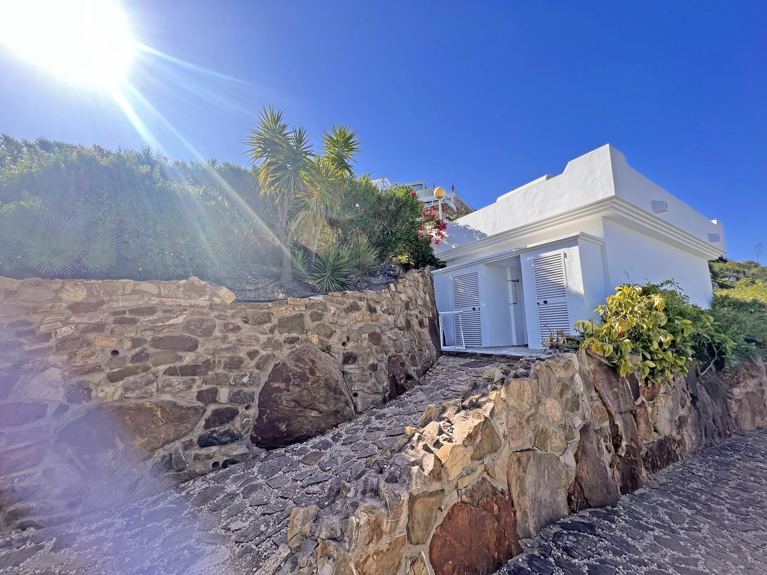 El exterior de la propiedad es indiscutiblemente la joya de la corona. Desde su porche cubierto con barbacoa donde disfrutar de innumerables veladas en familia al aire libre, hasta sus exuberantes jardines con palmeras, fuentes y caminos que conducen a un mirador donde ver los amaneceres más impresionantes de la montaña.