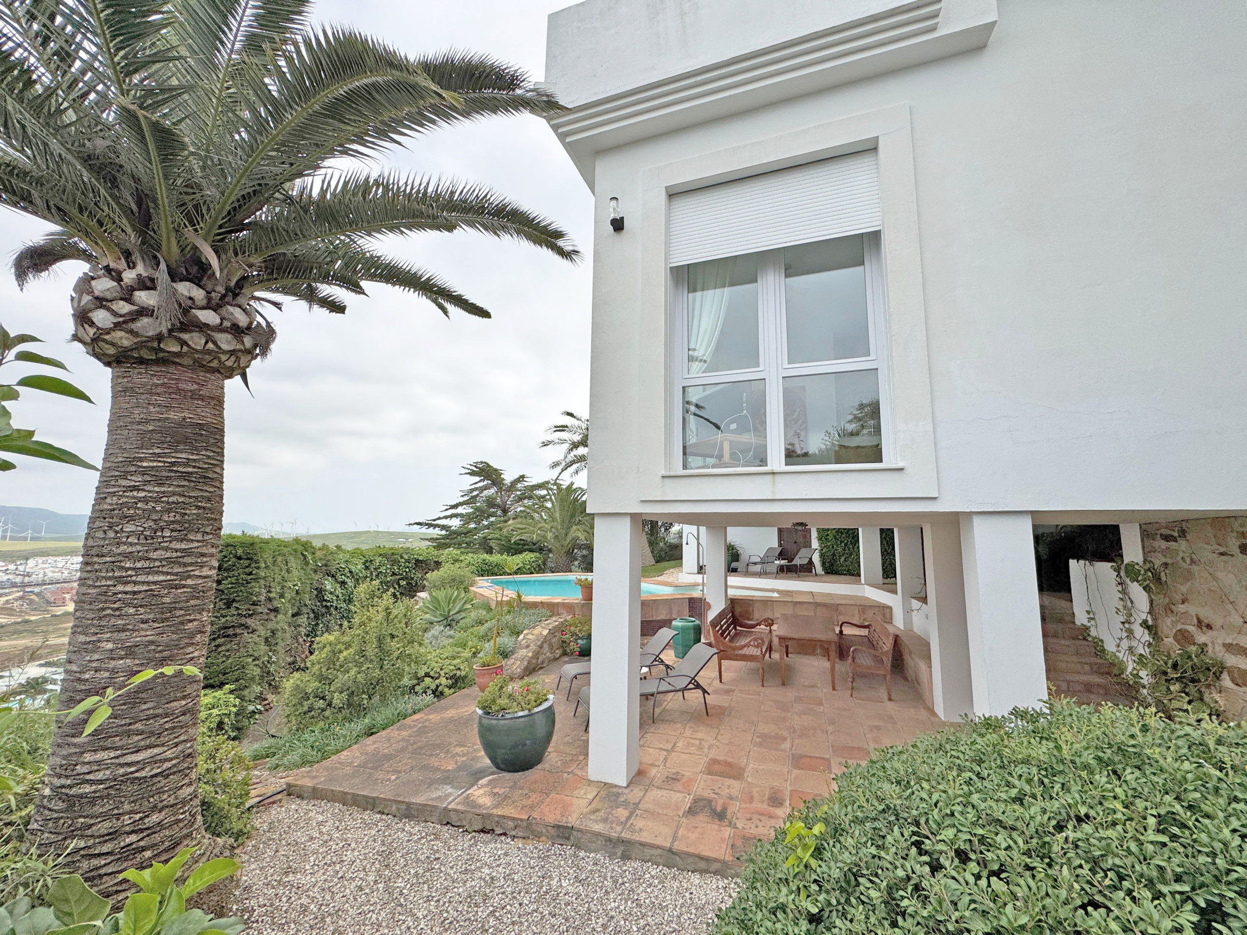 Preciosa Villa con piscina y amplio jardín con hermosa vegetación muy bien cuidada. Es ideal para sus vacaciones en familia, ya que dispone de este amplio espacio para disfrutar del aire libre y muy cerca de la costa. Además tiene unas vistas maravillosas hacia la montaña, el Faro Camarinal y las espectaculares playas de aguas cristalinas de Atlanterra.