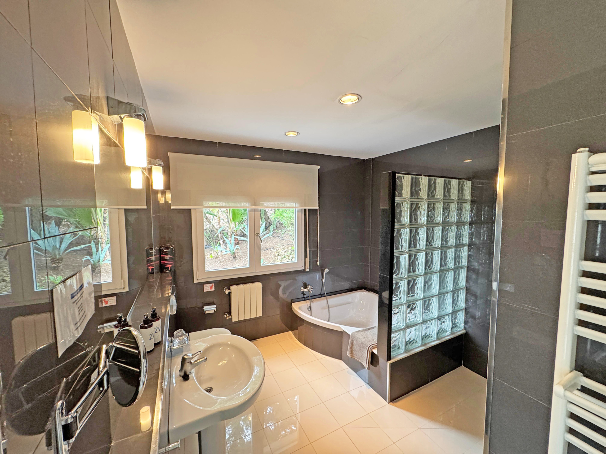 La villa dispone de aire acondicionado en todo el alojamiento, excepto en el dormitorio pequeño, el cual dispone de ventilador de techo.