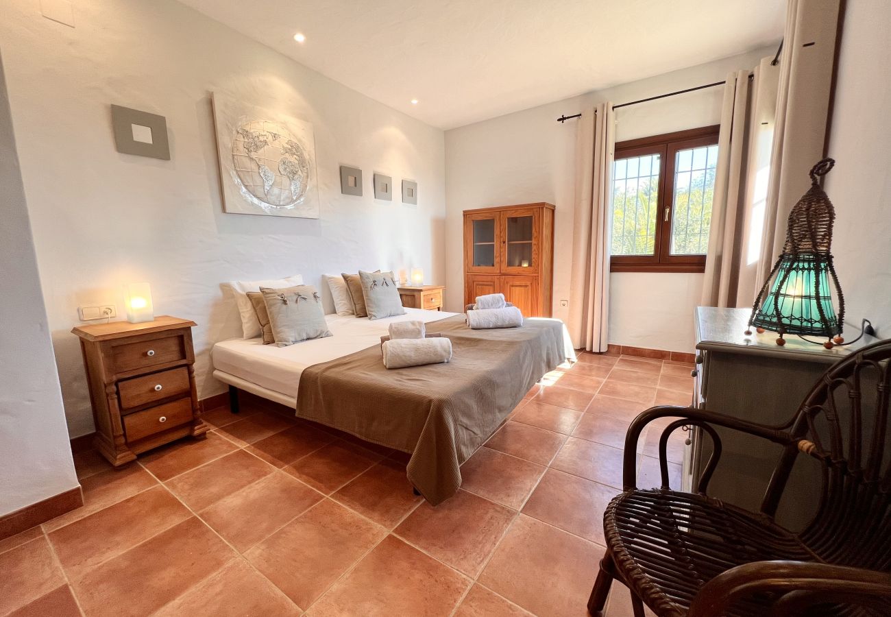 Cuando entramos en la propiedad, encontramos en su distribución: salón-comedor con chimenea, cocina totalmente equipada con despensa y lavadero, dos baños completos. Además de tres habitaciones dobles. Una de ellas con cama de 180cm y baño en-suite, otra con cama de 150cm y la tercera con dos camas individuales de 90cm.