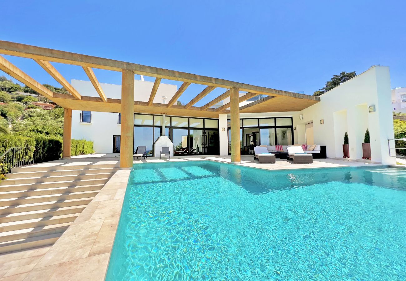 Los exteriores de la propiedad exhiben una vegetación perfectamente cuidada que da un toque Mediterráneo a esta preciosa villa.