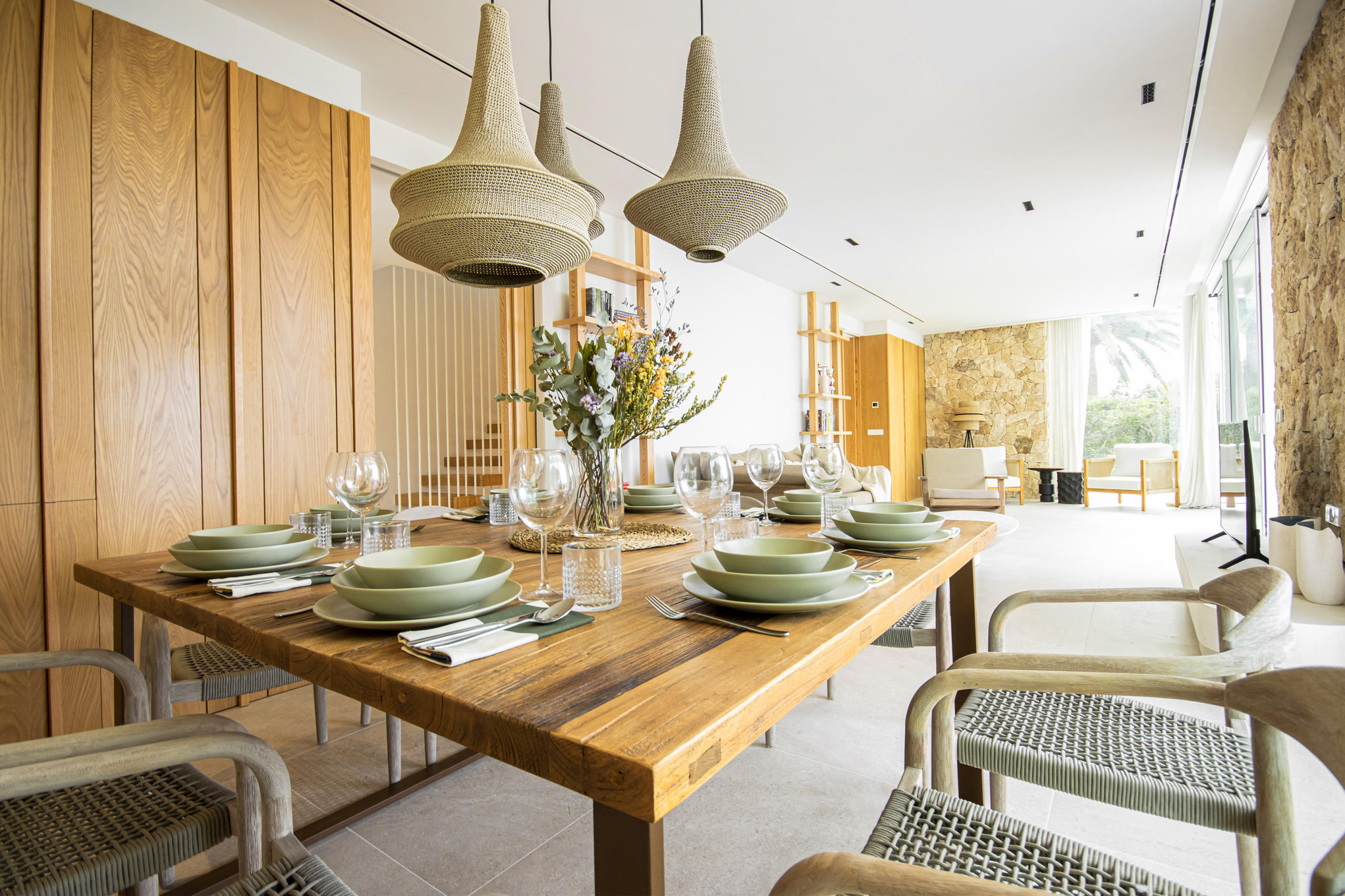 Auf ihren fast 3.000 m² Grundstück gedeiht die Vegetation, das Grün ihrer Bäume und die Kakteen, die so eigenartig, aber so charaktervoll sind. Das Haus mit weißer Fassade verfügt über 448 m² Wohnfläche. Wir können die Wohnung von mehreren Punkten aus betreten, wie es logisch ist: Ein Zugang befindet sich im gepflegten und verwöhnten Eingang an der Rückseite des Hauses, dessen Haupttür dem Besucher bereits den Charakter der Wohnung vorwegnimmt; ein anderer Zugang befindet sich an einer Seite und führt durch einen kleinen, lichtdurchfluteten Hof ins Innere. Der dritte Zugang befindet sich auf der Veranda, vor dem Grundstück und zu Füßen des Schwimmbades.
