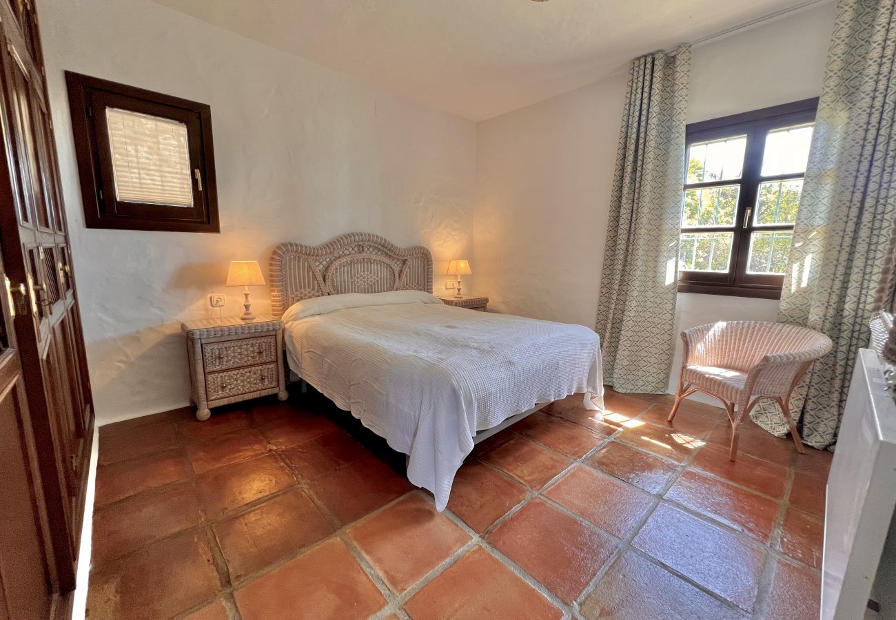 Auf der anderen Seite der Veranda befindet sich ein geräumiges und unabhängiges Schlafzimmer mit Badezimmer, mit Blick auf den Garten des Hauses und Meerblick. Sehr komfortabel und privat, da es vom Rest des Hauses völlig unabhängig ist.