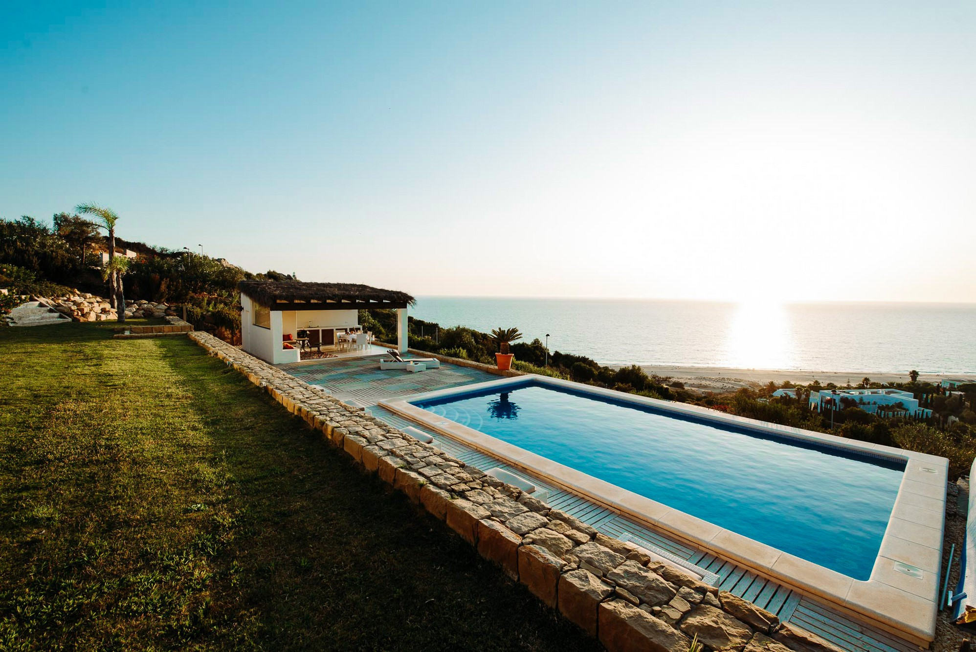 Im unteren Teil des Gartens versteckt, bekrönt ein Außen-Jacuzzi die Reize dieser wunderbaren Villa. Bei Tag mit herrlichen Ausblicken auf das Kap von Trafalgar und bei Nacht unter dem beeindruckenden Sternenhimmel Andalusiens.