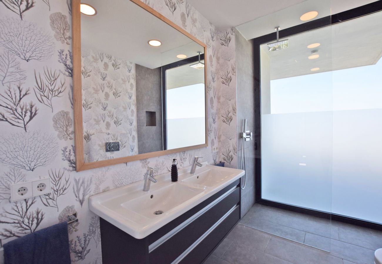 The remaining 3 bedrooms with access to the sun terrace are located on the top floor. One of the bedrooms has an en suite bathroom the other two share the 2nd bathroom. All feature more than sufficient cupboards and offer a fantastic view.