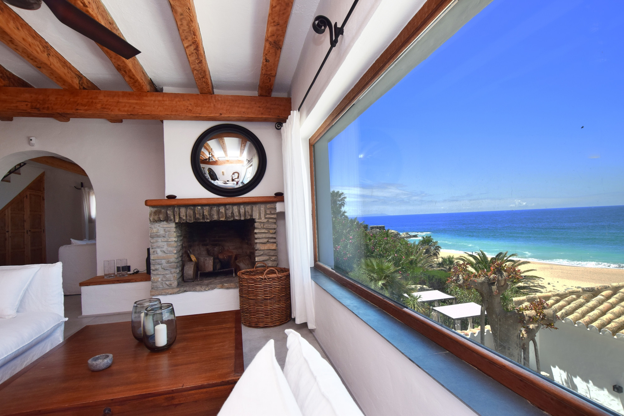 On the shores of the well-known Búnker beach in Atlanterra, Villa El Peñón is hidden behind a prominent rock in the sand and looks integrated on the first line with infinite views of the Strait of Gibraltar.