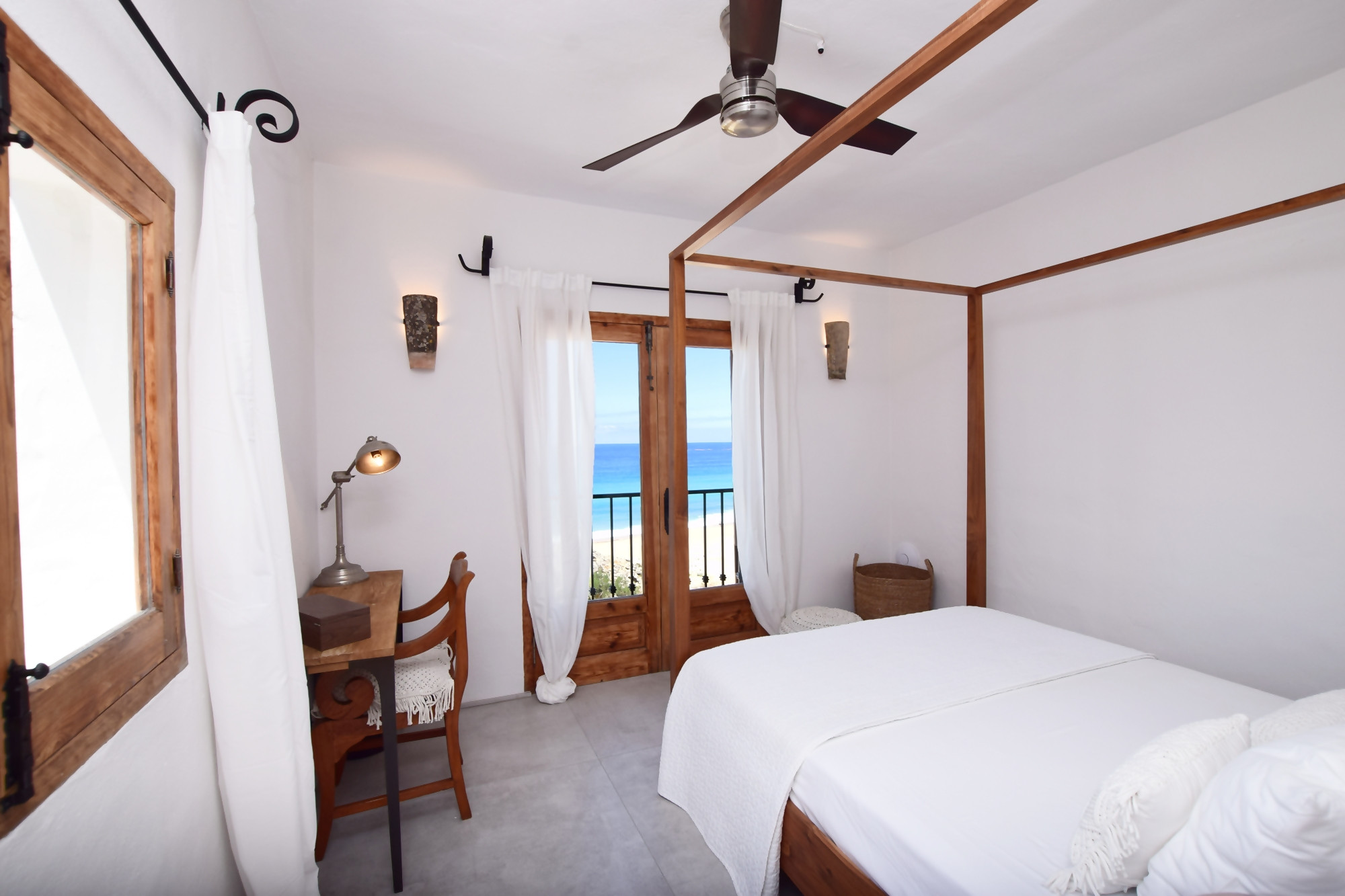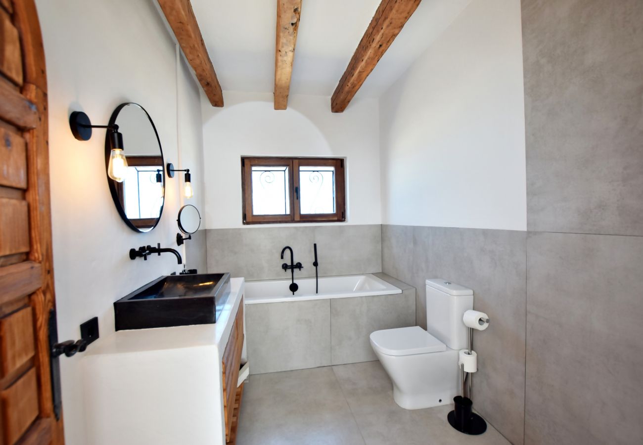 If we go up the spiral staircase located at the entrance, we will access the upper floor where we find the main suite with air conditioning that has a spacious bathroom and a comfortable dressing room. In addition, the main bedroom enjoys a balcony with magnificent views and a terrace area sheltered from the wind.