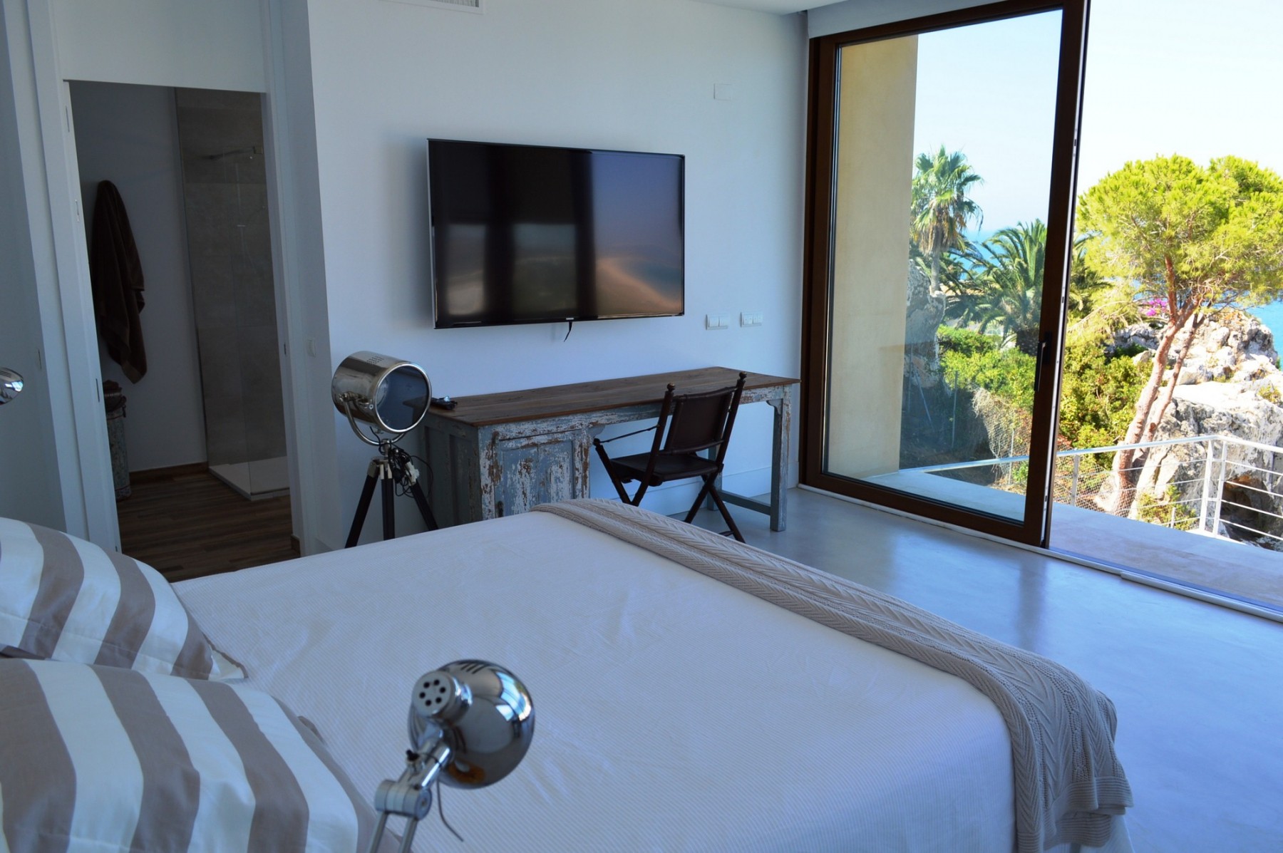 It has a large living room with fireplace, 7 spacious bedrooms, all with sea views, three of them hanging and with en suite bathroom, 6 bathrooms, 1 toilet, fully equipped designer kitchen, solarium located on a rock and a secret cave where you can read classics and listen to music while we can see how the tuna fishing marks the beginning of the summer season.
