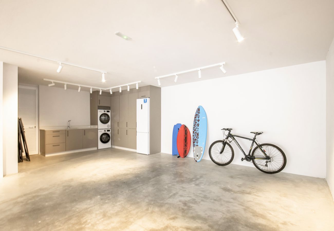 The villa has air conditioning, all lighting can be managed by remote control, motorized blinds, hot water, WiFi, Satellite TV and cover garage for 4 - 5 vehicles.