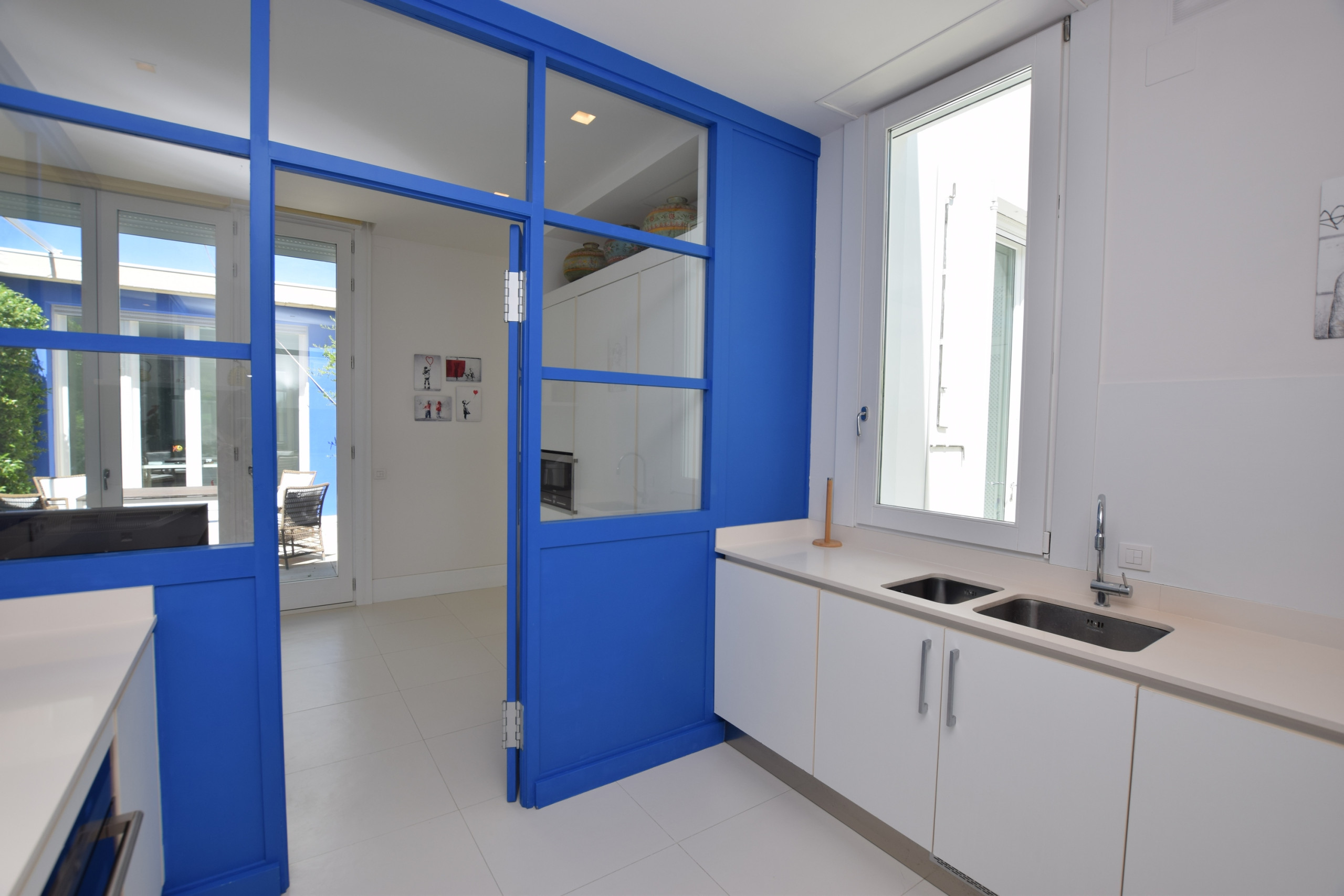 In the East wing from the entrance distributor, organised by a corridor, we come across a comfortable toilet, a laundry area, access to the small patio that leads to the exterior of the dwelling and, lastly, the fully equipped kitchen bathed in natural light. The kitchen shares the magnificent Japanese garden which gives spaciousness and luminosity to the space. From the kitchen, one can also access the dining area.