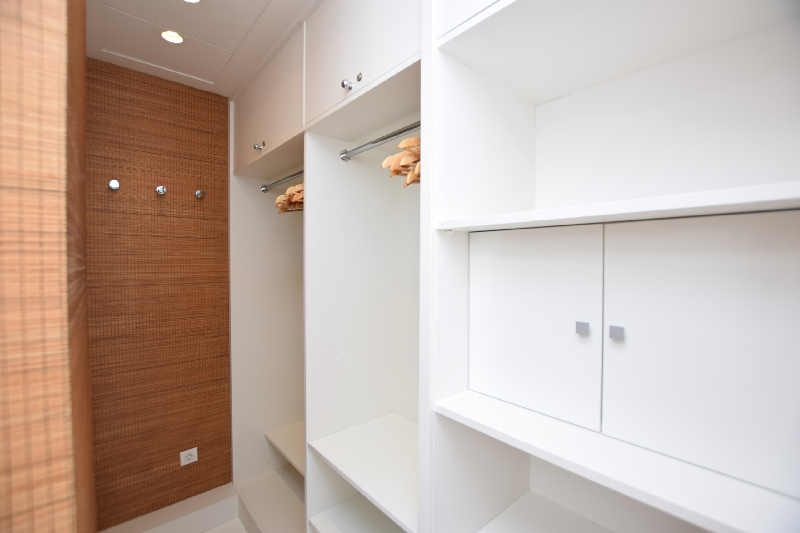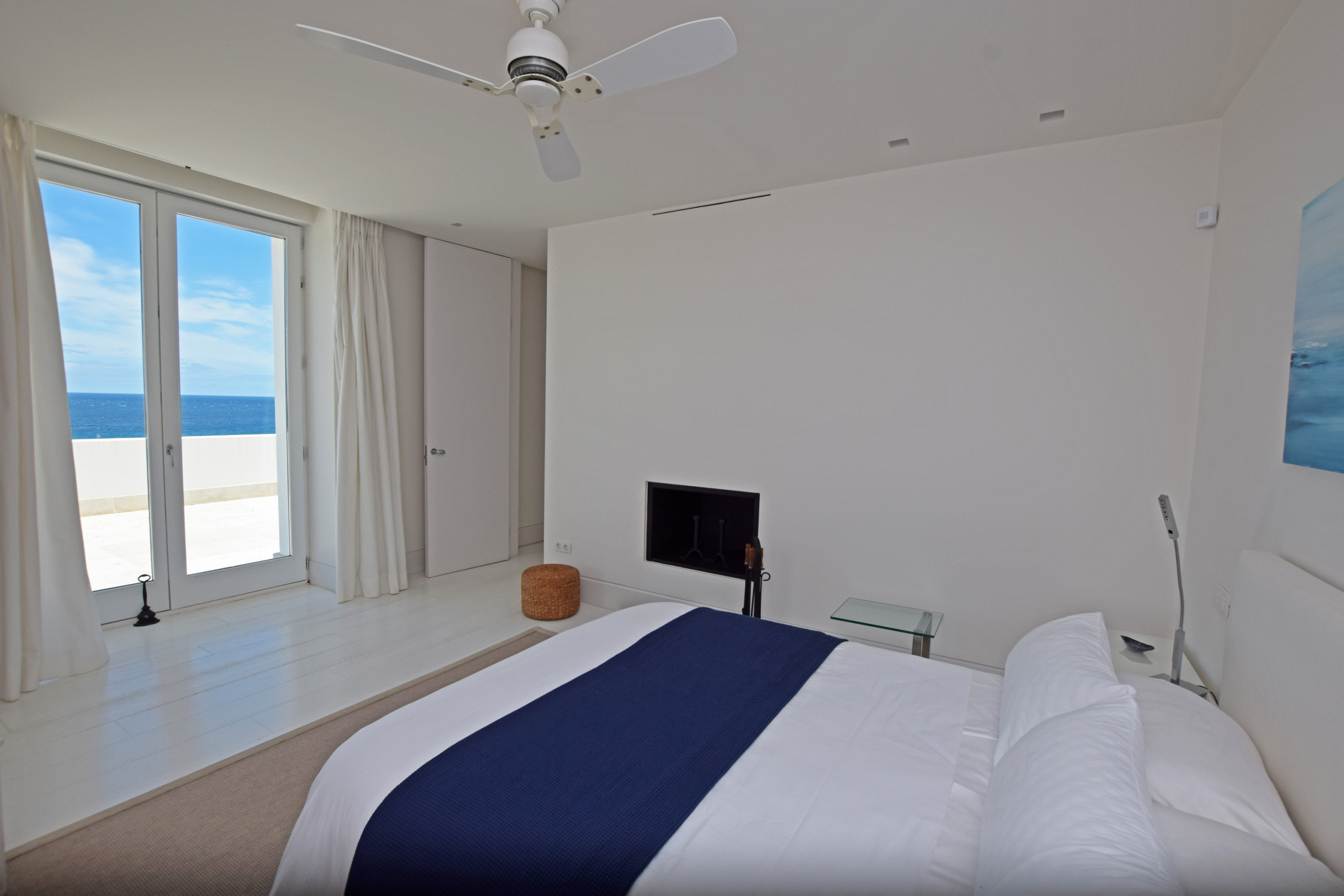 On the lower floor there are a total of 5 large bedrooms -all with panoramic views of the sea-. Except for two of the bedrooms that shared a double entry bathroom with a shower and two sinks, the rest of the bedrooms have their own fully equipped bathroom. Three of the double rooms have queen beds and the other two count with two single beds each -that can be joined together or left separated-. All five bedrooms are exquisitely designed, have large terraces and great privacy.