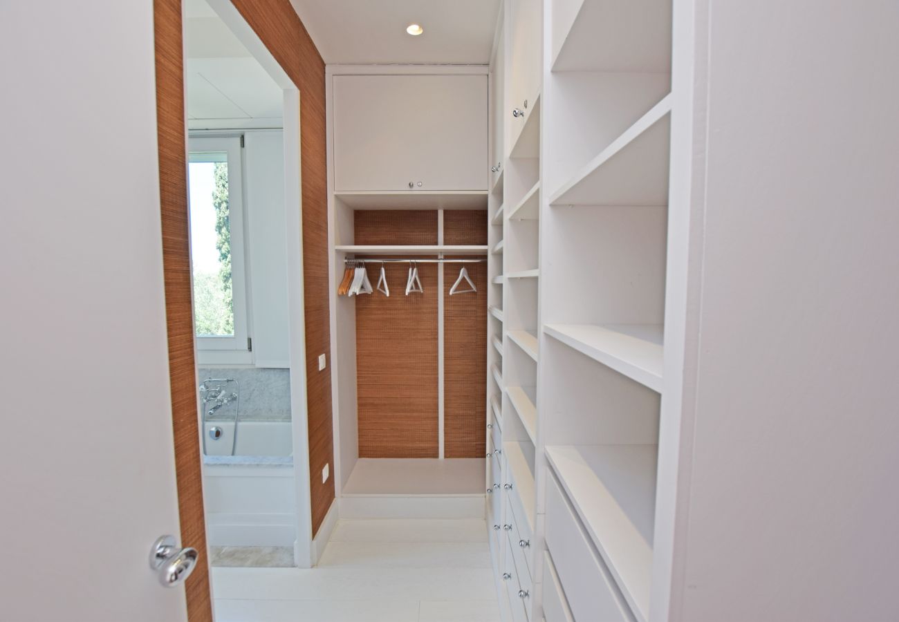 In the West wing of the dwelling, we find a glazed corridor that provides access on the left to the porch and at the back to an independent area of the dwelling with three double bedrooms, one of them with an en-suite bathroom and the other two with a fully equipped shared bathroom. The porch can be closed thanks to vertical awnings installed in the three arches accessing the pool area; the spacious area offers multiple opportunities for its distribution and functionality.