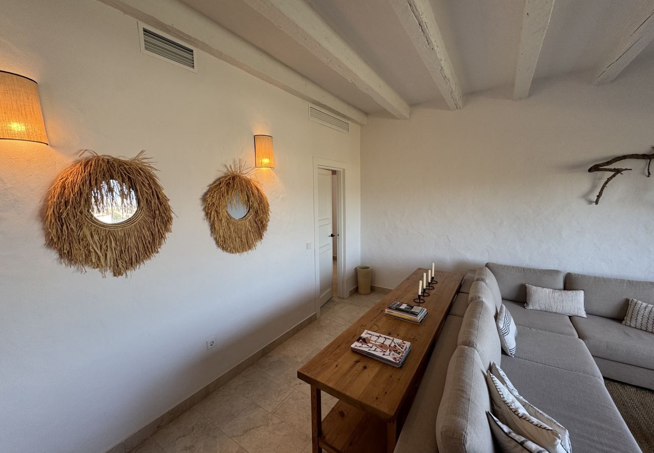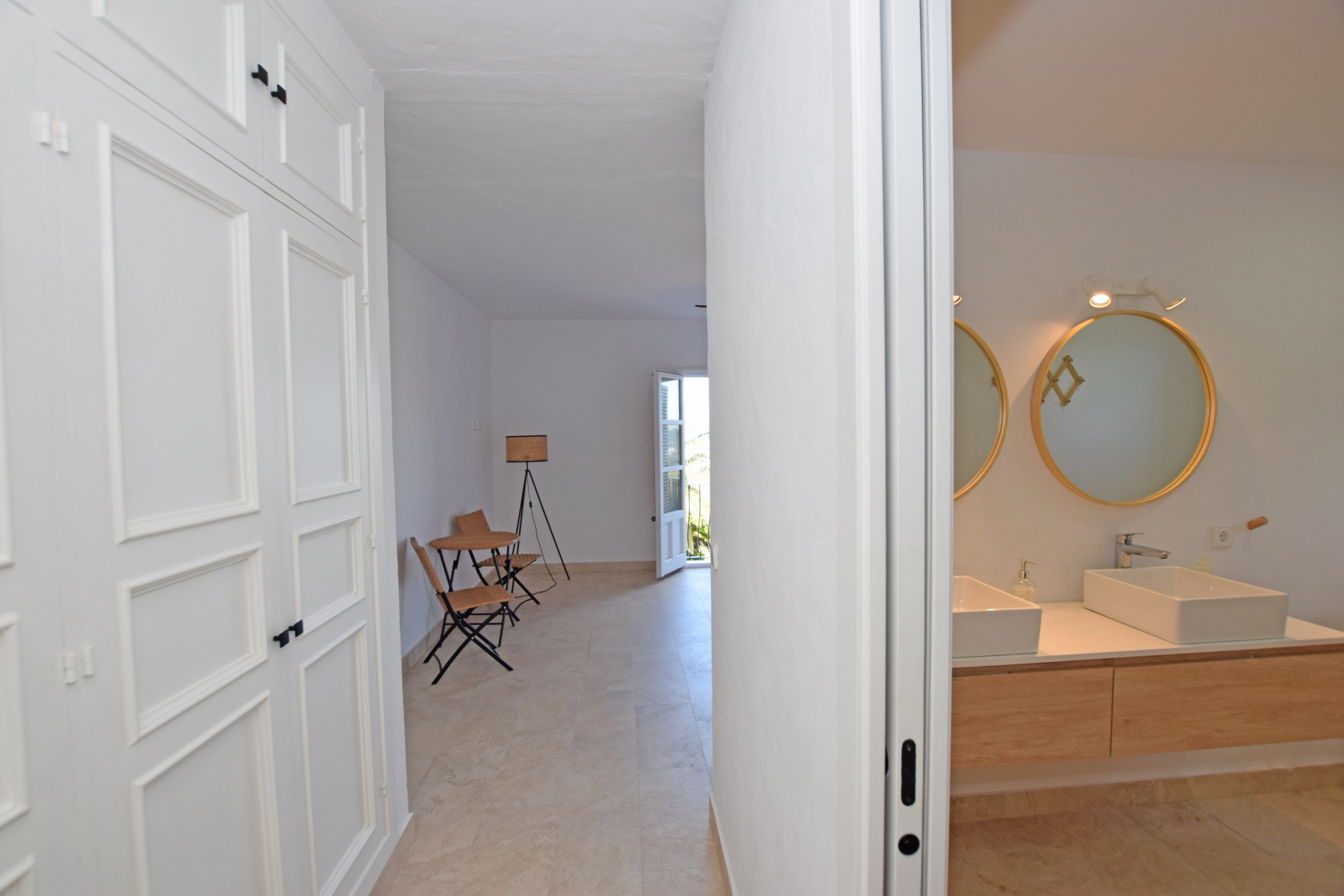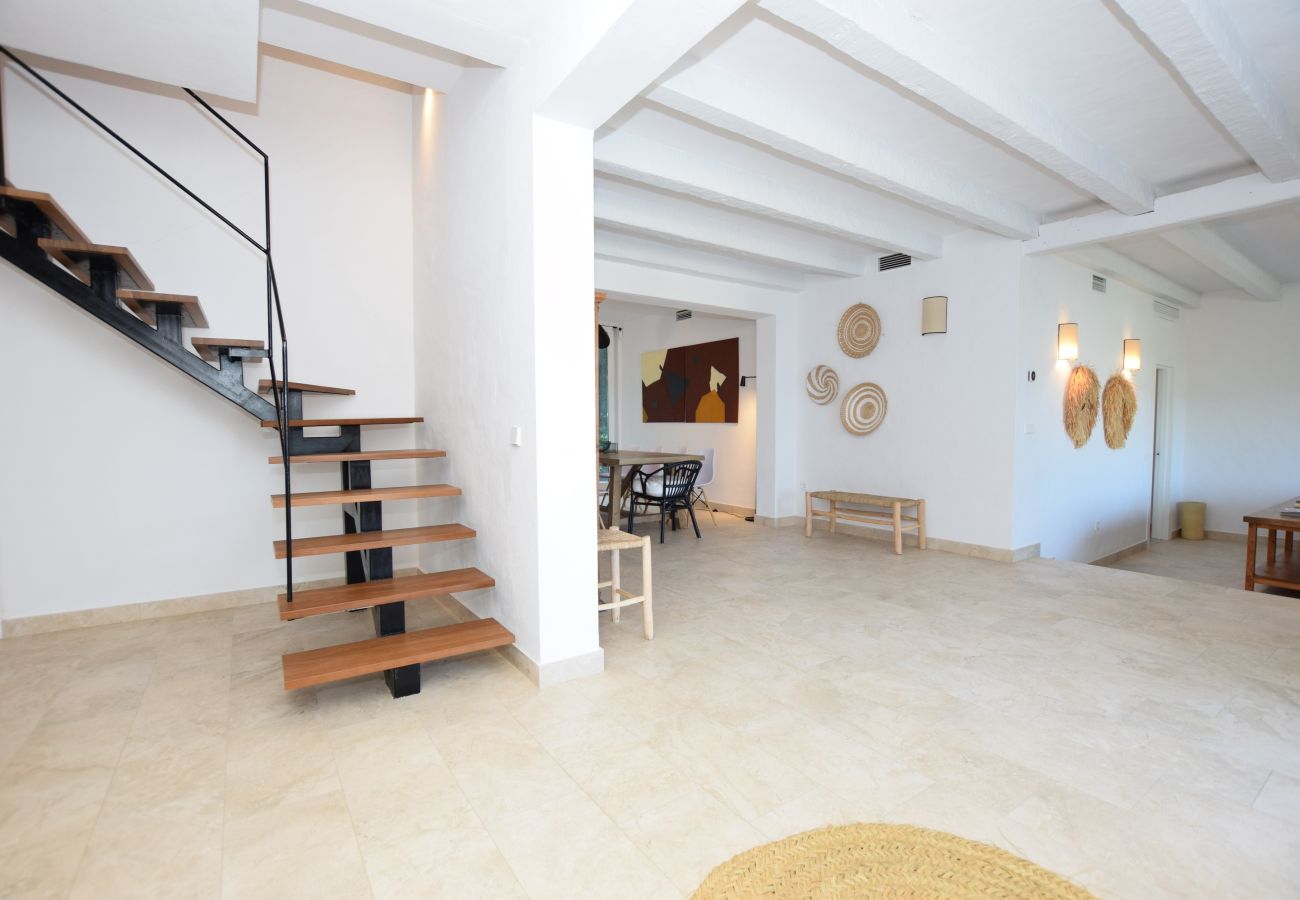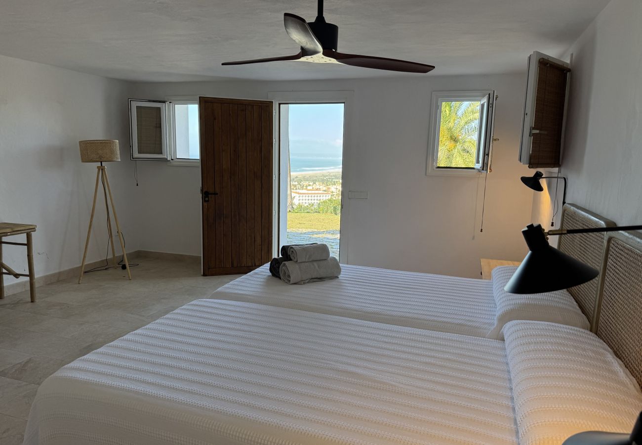 If we go up the spiral staircase located at the entrance, we will access the upper floor where we find the main suite with air conditioning that has a spacious bathroom and a comfortable dressing room. In addition, the main bedroom enjoys a balcony with magnificent views and a terrace area sheltered from the wind.