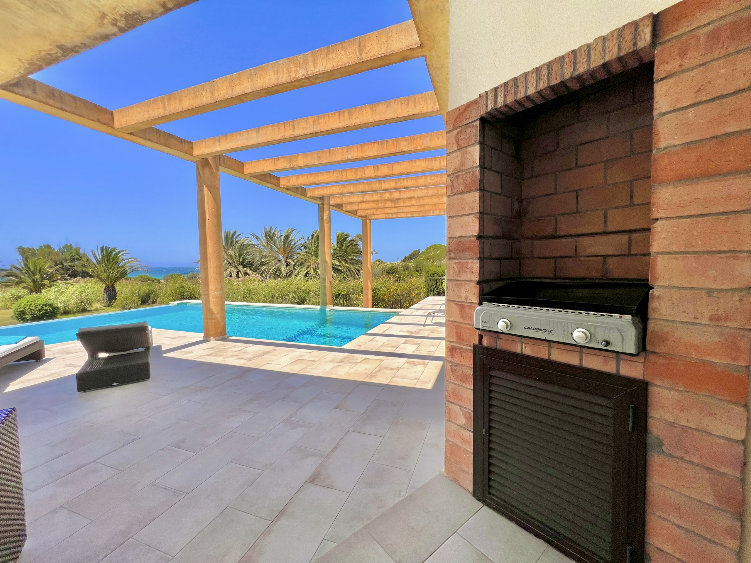 The best part of a holiday by the sea is making the most of the outdoors, and this house is spectacular because life happens outside. The comfortable porch with outdoor furniture, the overflowing pool, and the barbecue create the perfect space to enjoy dips, family meals, and moments of fun. Additionally, the wonderful sea views make you not want to be anywhere else.